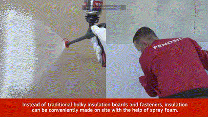 🔷Technologie energooszczędne, takie jak nowoczesne systemy izolacji termicznej i odzyskiwania energii, które pomagają zmniejszyć zużycie energii i wpływ na środowisko to również elementy z obszaru „cutting edge”. Poniżej przykład nowoczesnej izolacji w sprayu.